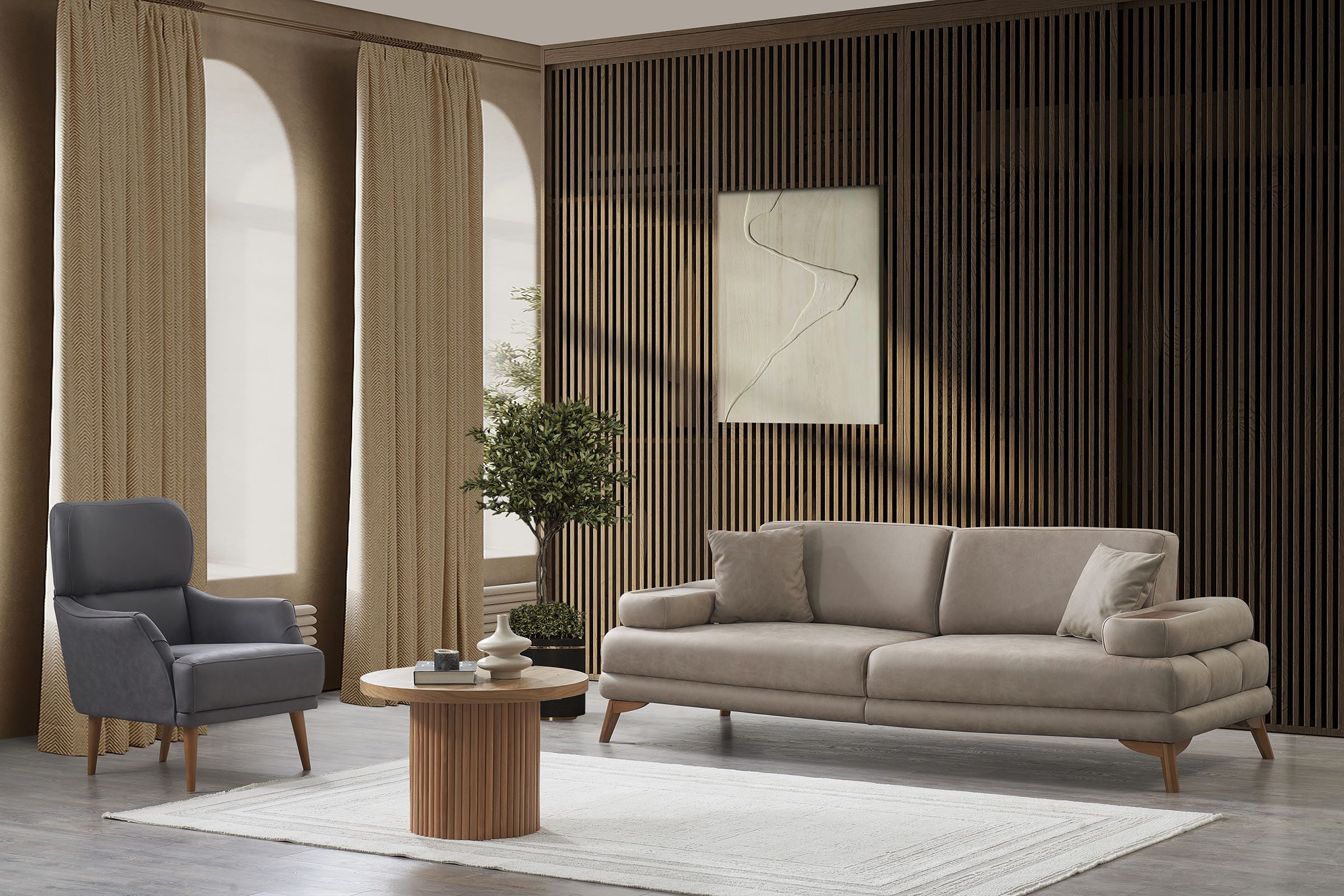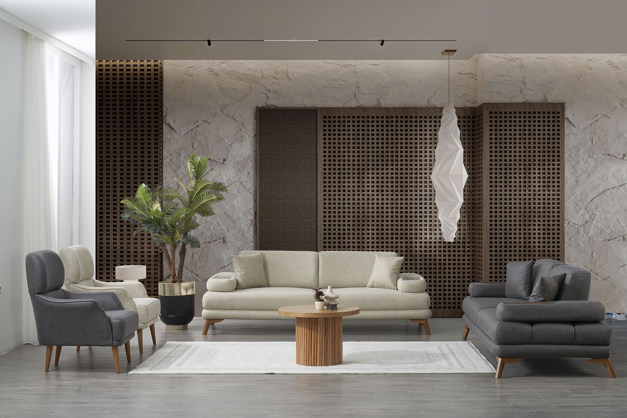 İnce detaylarıyla ilk bakışta dikkat çeker, zamanla karakterini hissettirir. Yaşam alanında feminen bir zarafet ve yumuşak bir akış sunar.