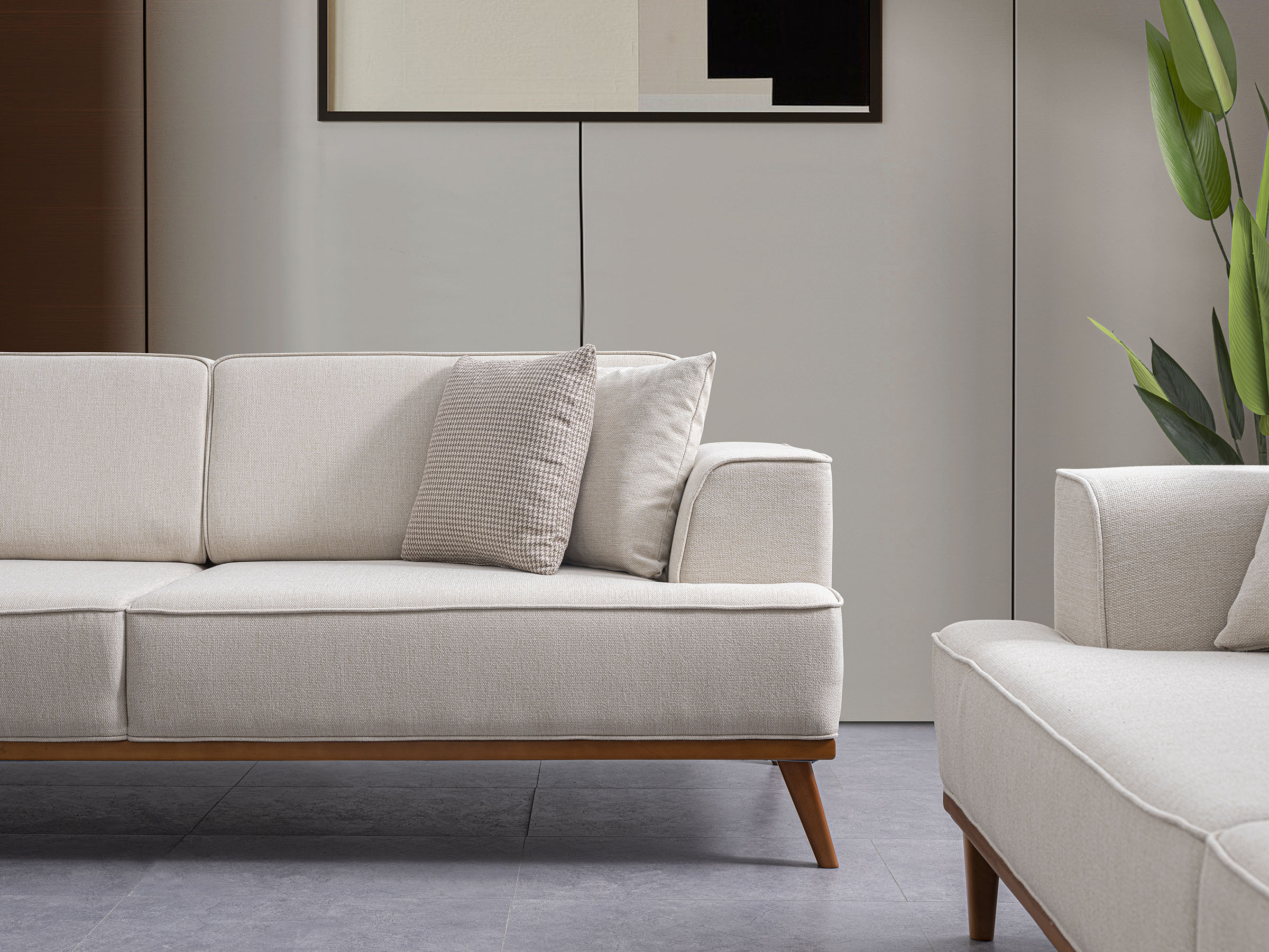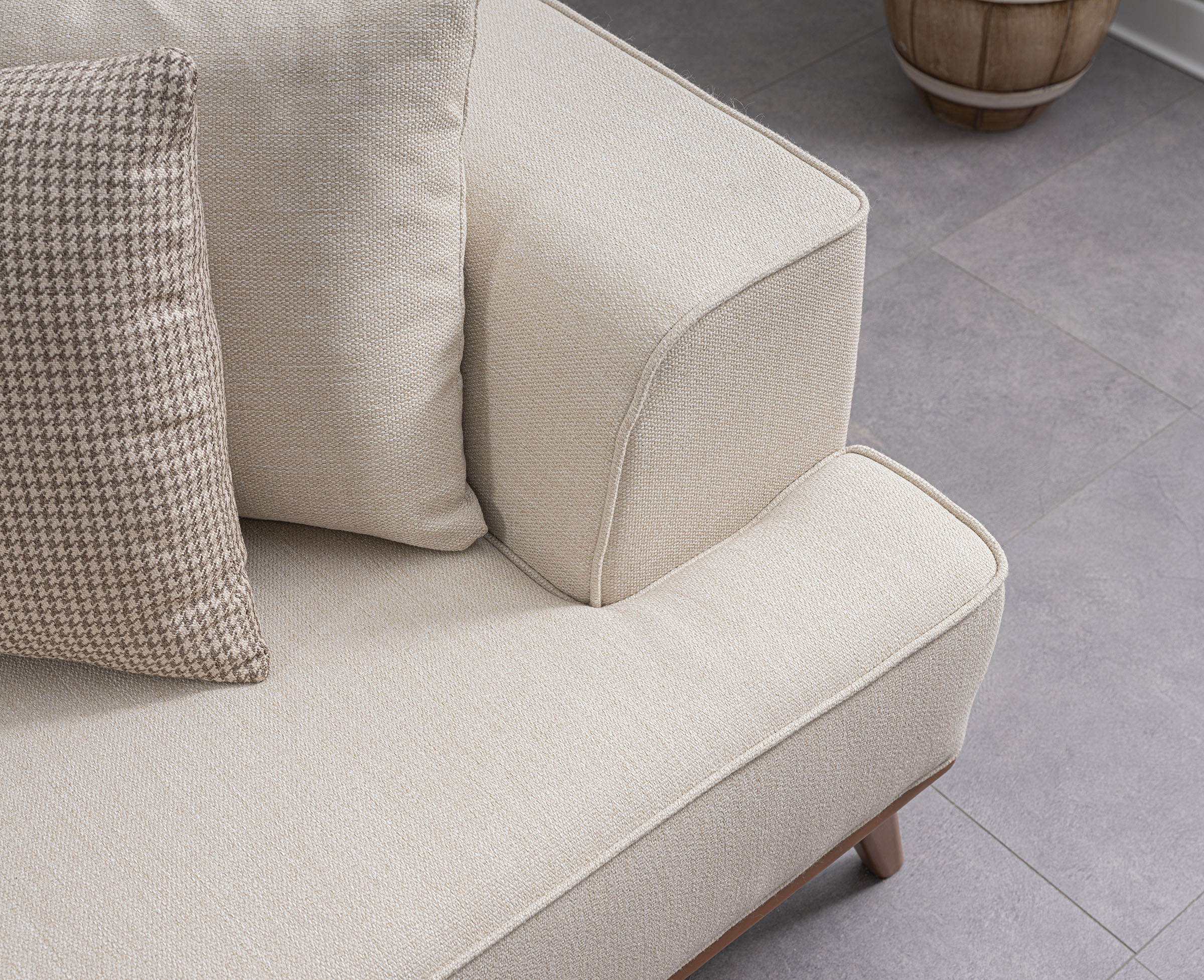 İnce ve akıcı formu sayesinde mekânda hafif bir etki yaratır. Rahatlığı doğal bir zarafetle tamamlayan sade bir ifade sunar.