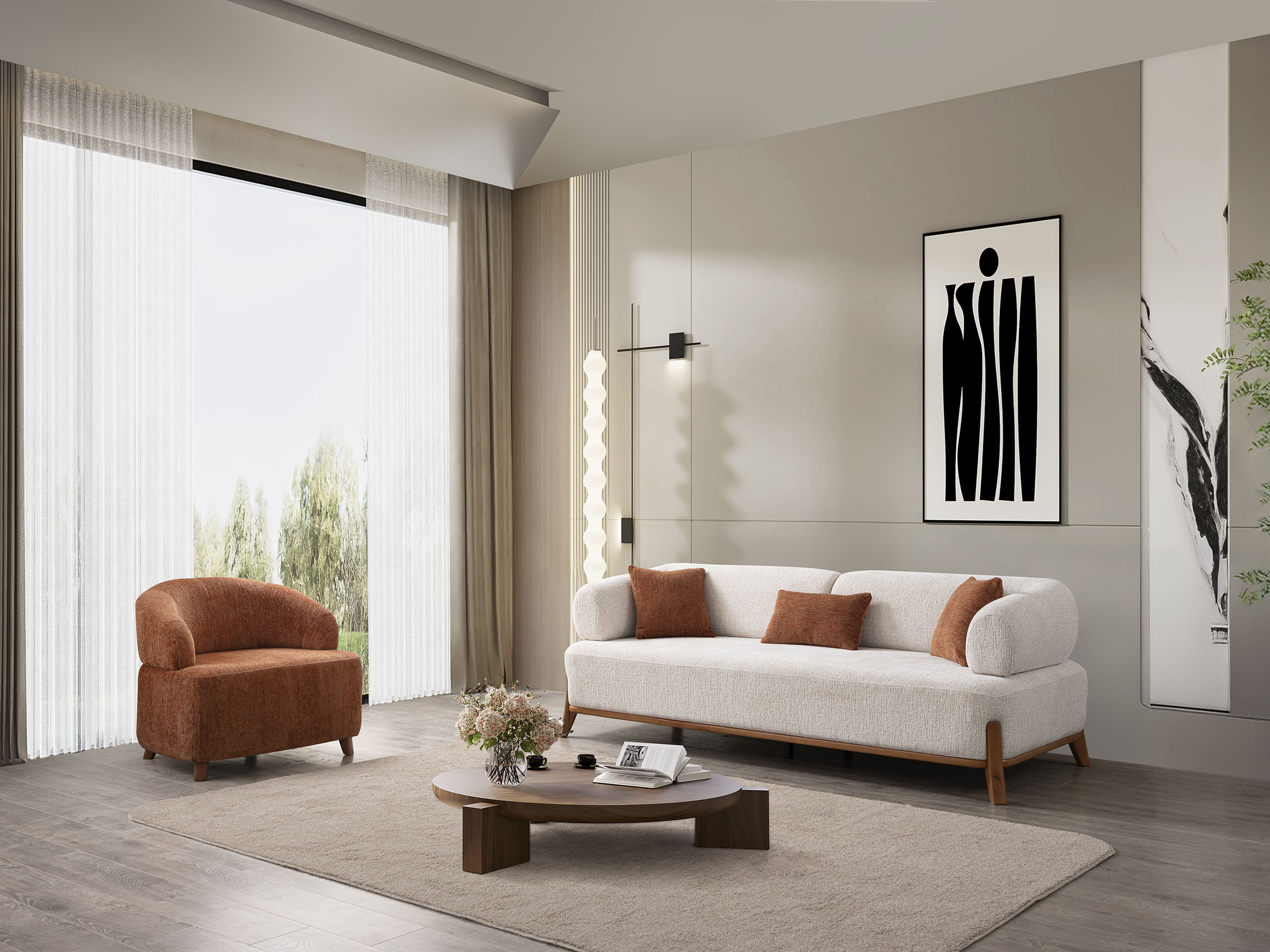 Rahat yapısı ve sıcak duruşuyla yaşam alanında samimi bir atmosfer oluşturur. Günlük kullanımda konforu ön planda tutan yalın bir ifade sunar.