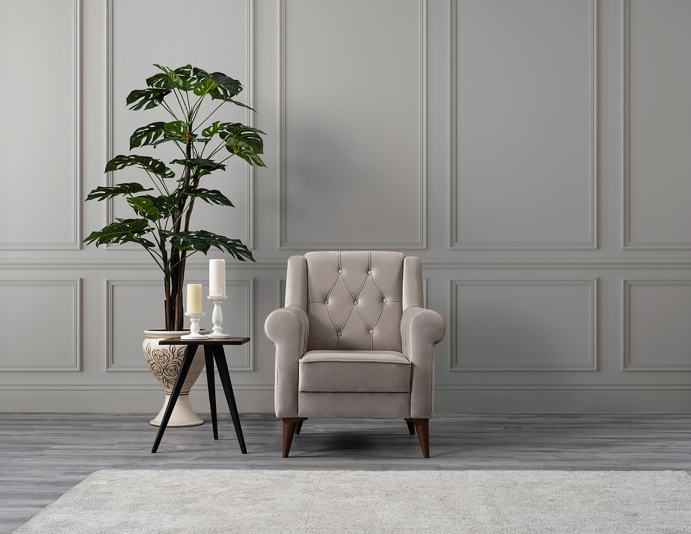 Geleneksel dokunuşları çağdaş bir bakışla harmanlayan tasarımıyla mekânda sıcak bir bütünlük oluşturur. Günlük yaşamda rahatlığı, dingin ve dengeli bir atmosferle hissettirir.